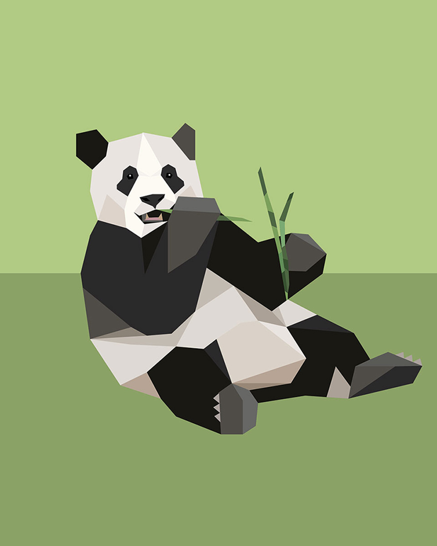 Geometric-style vector illustrations, designed and produced using Illustrator. The aim of this project was to challenge my ability to simplify shape and colour, by rendering a photographic image into a basic low-poly form. This was achieved through identifying key shapes on the animals, and colour picking the average shades, to create areas of shadow and light.