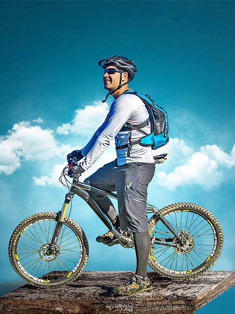 This piece is a digital photomontage created using Photoshop, by layering multiple images together, masking, dodge and burning, retouching, adjusting levels and lighting and creating shadows. HDR toning was performed on the subject to bring out the shadows and create dynamic contrast.