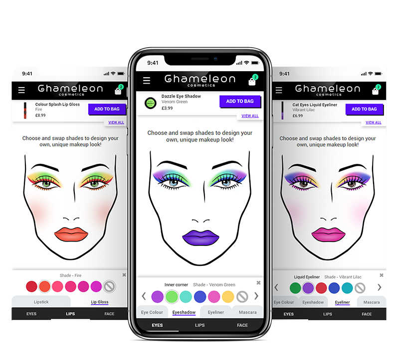 This fun, interactive feature allows users to choose and swap different shades of Chameleon Cosmetics products, and apply them to a virtual face chart to design their own personalised makeup look. It is quick and easy to use, and allows makeup lovers to unleash their creativity by mixing and matching a wide range of products, from lipstick and blusher, to eyeshadow and mascara.