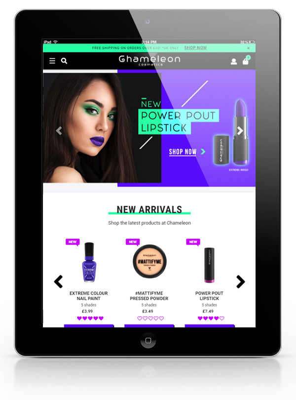 An interactive, dynamic, database‑driven, e‑commerce web application for a fictional cosmetics brand, named Chameleon Cosmetics. The website is fully responsive, optimised for mobile, and contains several unique, interactive features, including a virtual 'try‑on' makeup feature, as well as animated product views.