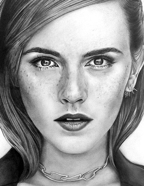 A graphite pencil portrait of actress Emma Watson on A2 paper. This hyper-realistic drawing was undertaken to challenge my illustration skills and to practise my eye for detail, light and shadow. I chose Emma Watson as the subject, as not only am I personal fan of hers but also, as she is a strong feminist, I wanted to capture her strength and determination in her portrait through the intensity in her eyes.