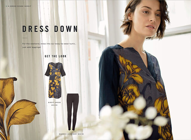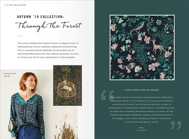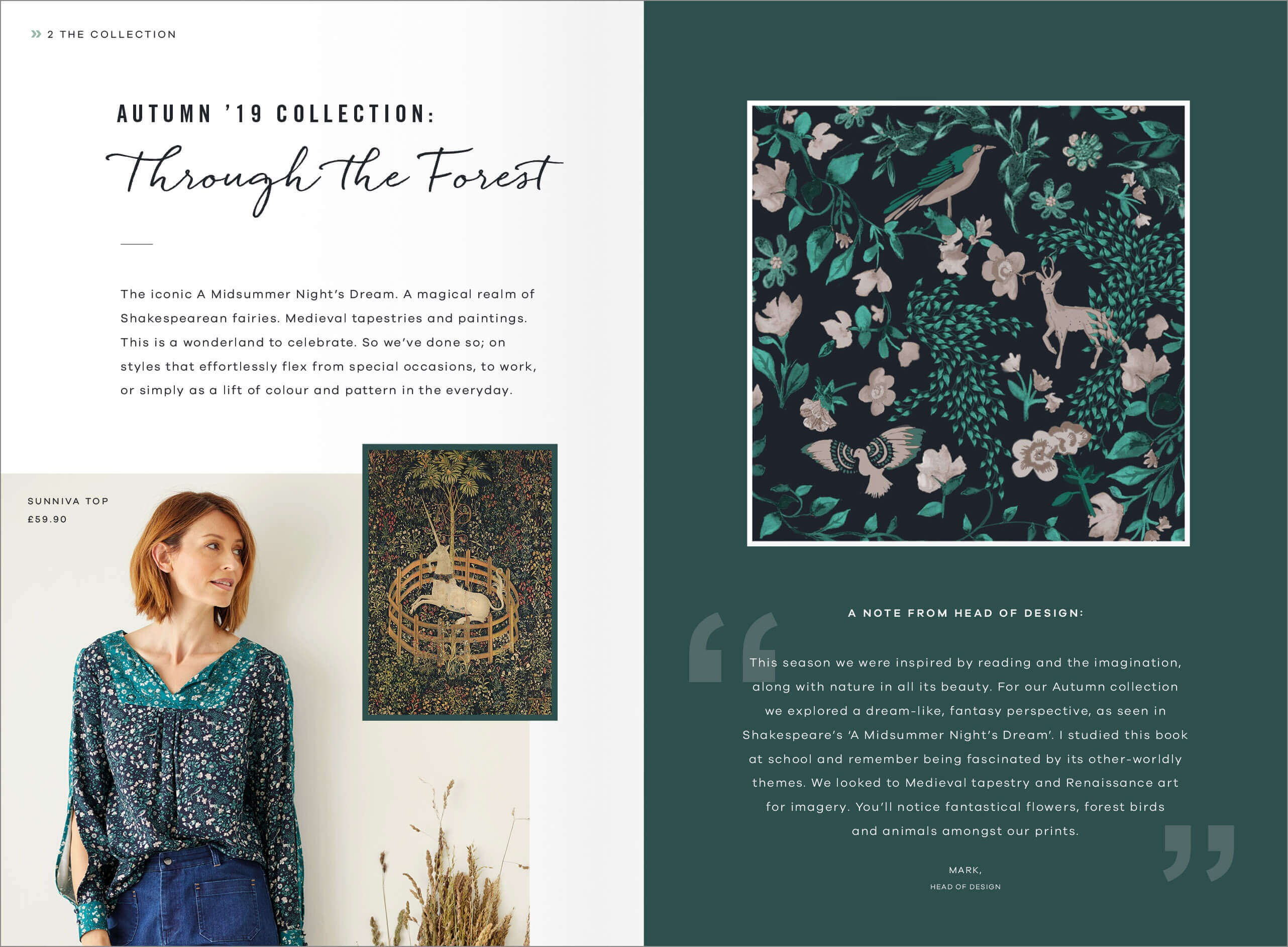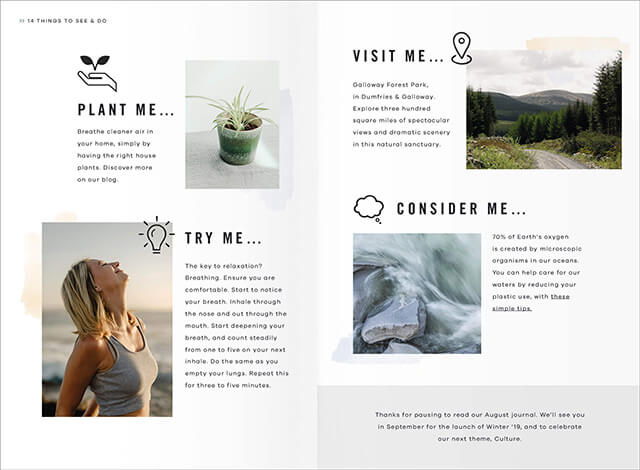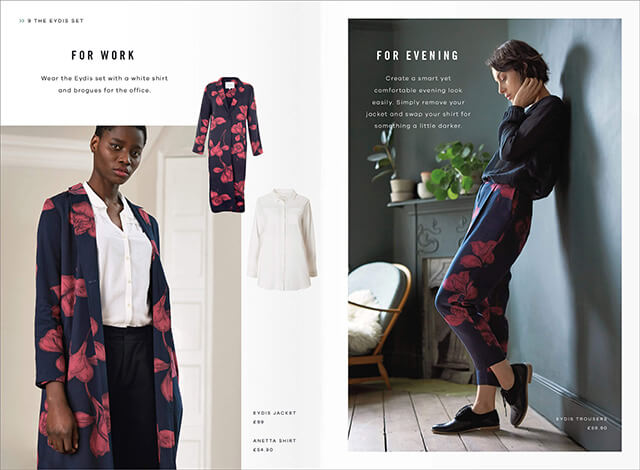 A Thoughtful Journal is a digital look book that I design each month for Thought Fashion Ltd. which showcases key pieces from the latest collections, style tips, outfitting ideas, print stories, and much more. The look books are hosted on Thought's website and contain interactive shoppable links where products are featured, so customers can 'shop the look.' See below pages from the August issue.