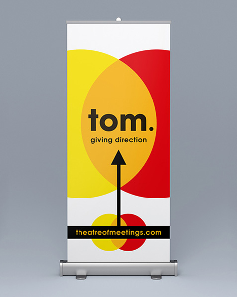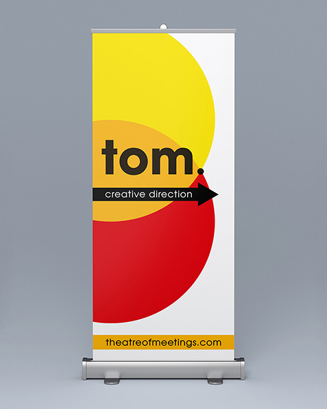 While working at Crumpled Dog Design, I produced several vertical banner designs for one of Tom.'s corporate events, promoting the company's identity, slogan and agenda. Visual branding was maintained through creative implementation of the logo's tri-circle design.